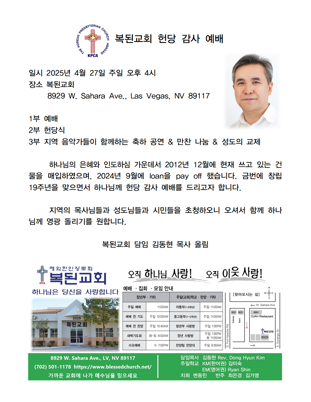 복된교회 담임 김동현 목사 올림