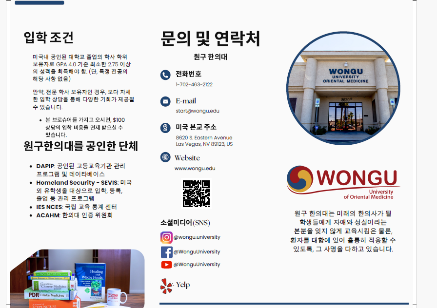 "원구 한의과 대학, 라스베가스에서 미래 의료 전문가로 거듭나세요!"