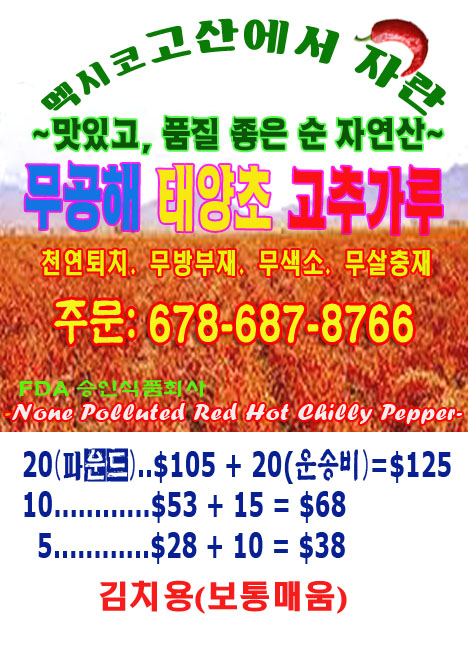 멕시코 고산에서 자란 12월에 수확한,맛있고 건강에 좋은 무공해 태양초(나무에서 가습해서 곰팡이와 변질이 없…