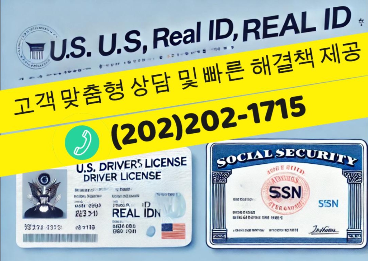 어떤 상황에서도 미국 운전면허와 리얼 아이디, 사회보장번호를 받으실 수 있도록 도와드립니다!